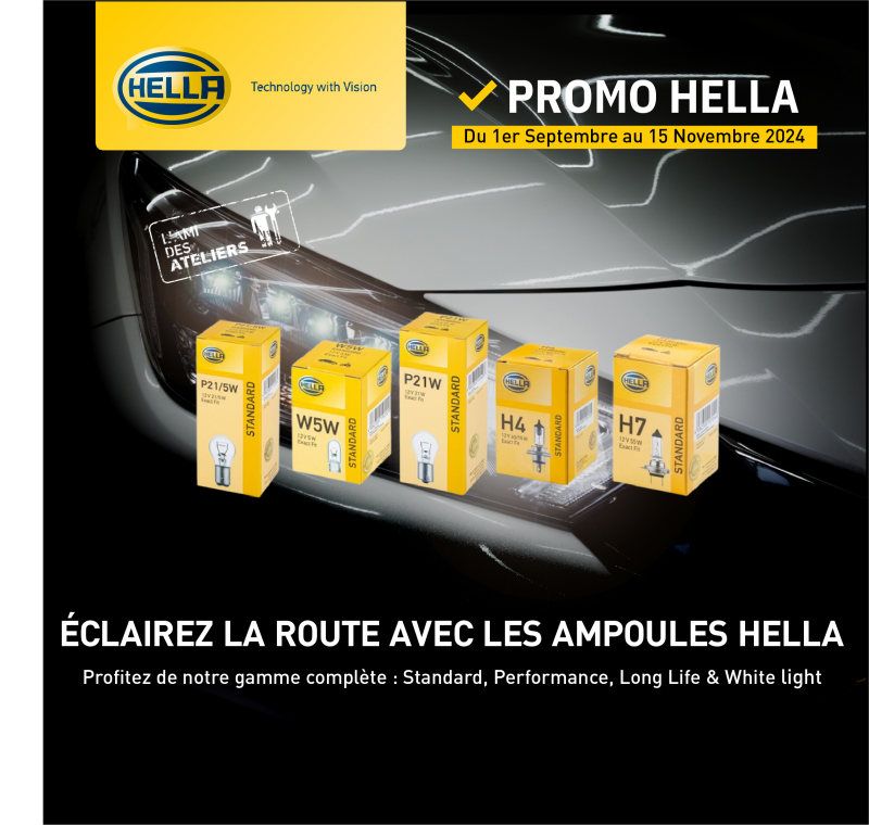 Offre valable du 1er Septembre au 15 Novembre 2024 sur la gamme complète Hella Standard, Performance, Long life, White light, pour tout achat réalisé dans les magasins FEM de Marseille et de Vitrolles - Les-Pennes Mirabeau.